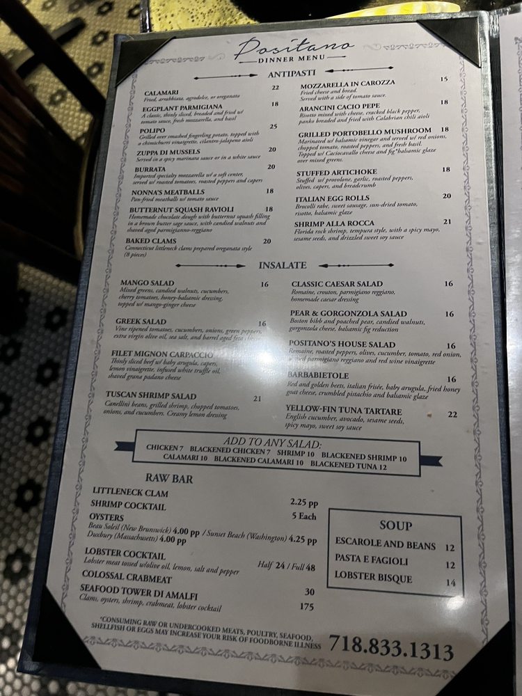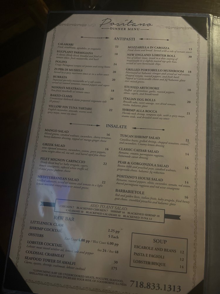 Positano Restaurant Menu (2025 Update)